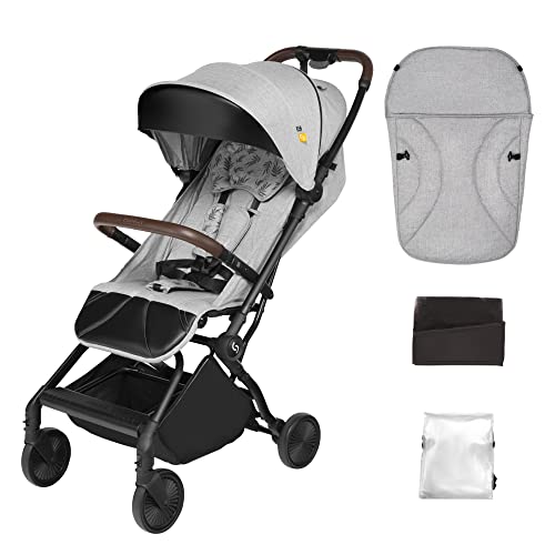 skiddoü Resevagn Espoo+, barnvagn buggy med automatiskt enhandsvikningssystem, barnvagn upp till 22 kg, barnvagn med myggnät, benskydd och regnskyddsfilm, med rem, ljusgrå