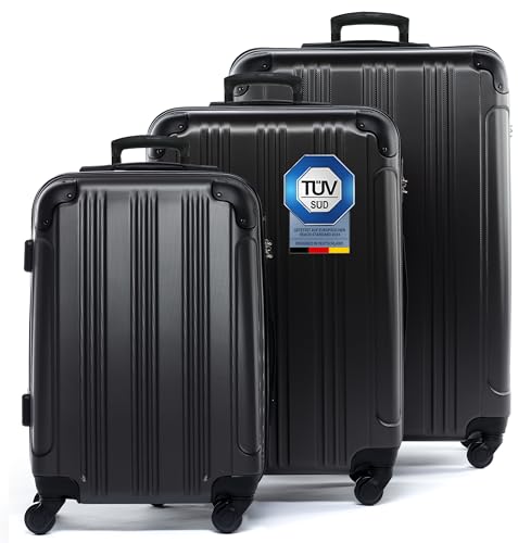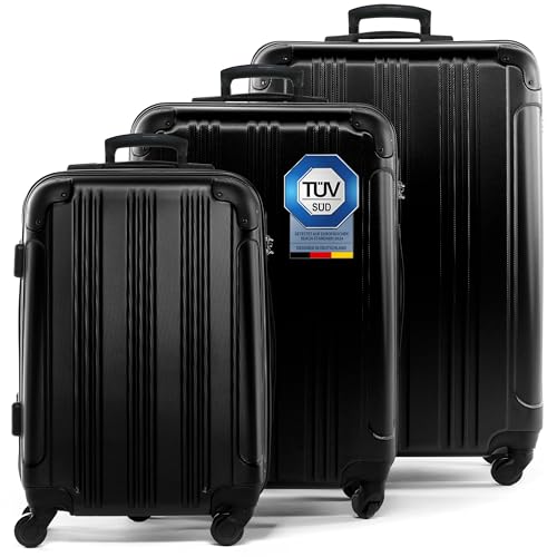 FERGÉ Bagageset, 3 delar, hårt skal, resevagn, QUÉBEC resväska, set med 4 tvillingspinnarhjul, Svart, 3 PIECE SET