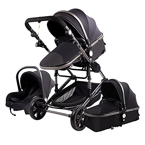 3-i-1 duovagn (liggdel och sittdel), barnvagn med travel system, babyskydd, bärbar resevagn, vikbar, high landscape-barnvagn (518 svart)