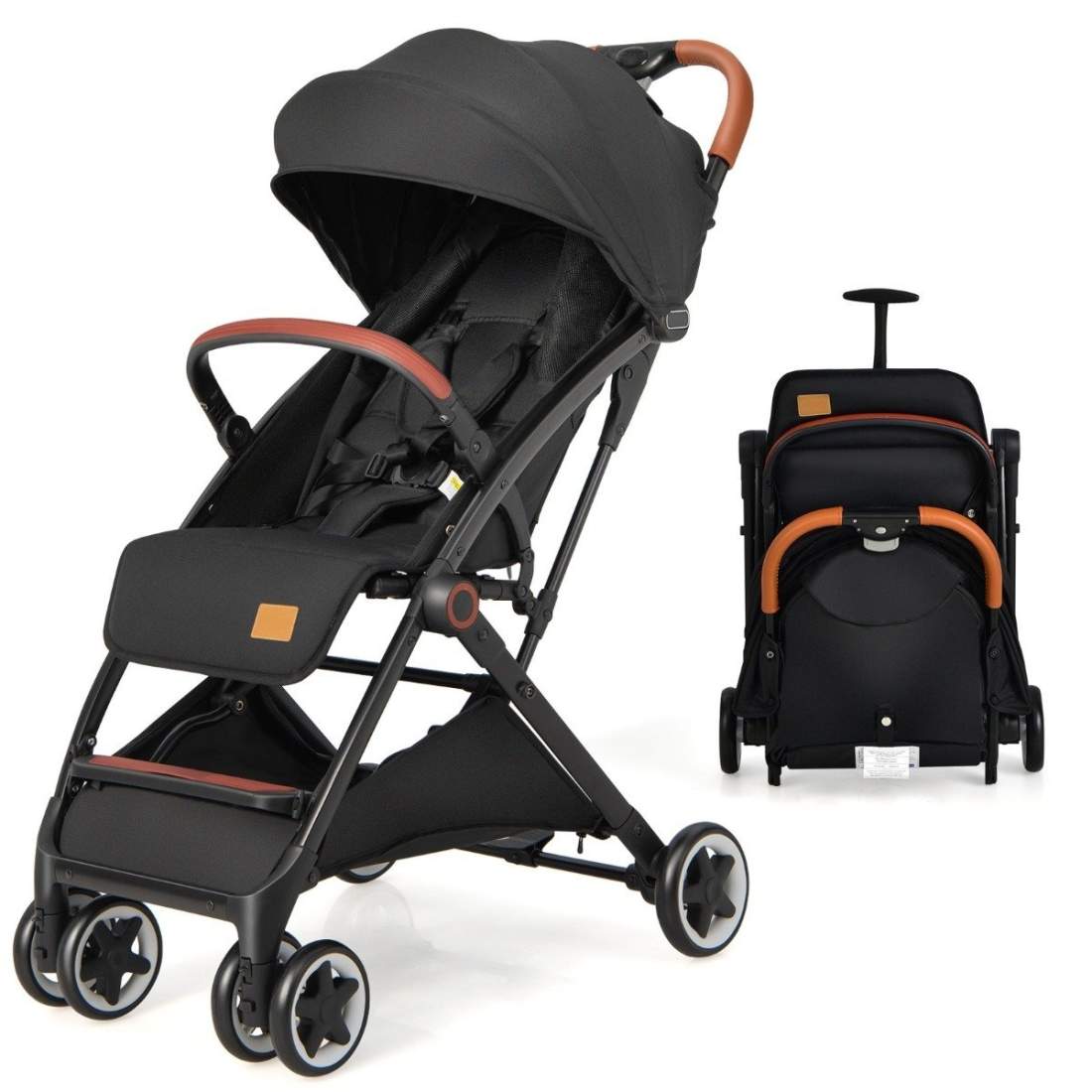 COSTWAY Vikbar barnvagn, resevagn med liggfunktion, barnvagn med justerbart ryggstöd och dold, lätt babyvagn med 5-punktsbälte för baby upp till 3 år, 15 kg (svart)