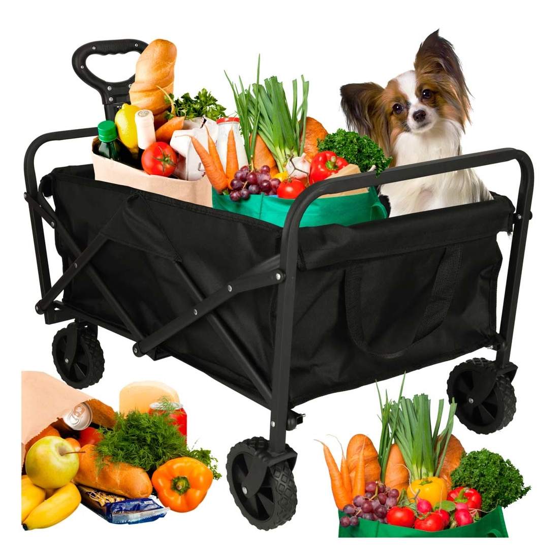 GOPLUS Husdjursvagn, vikbar katt- och hundvagn med korg och hylla, justerbart kapsel, terrängiga EVA-hjul, bärbar resevagn för små och medelstora husdjur (svart)