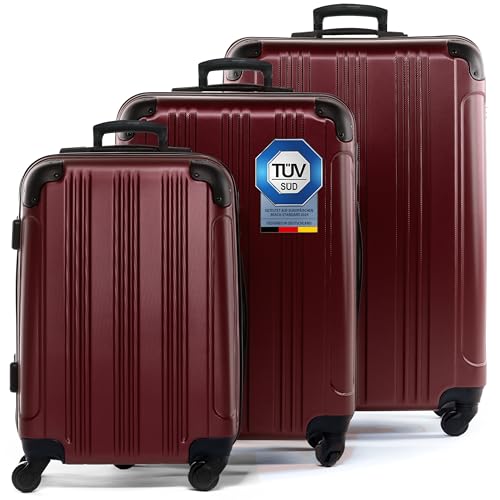 FERGÉ Bagageset, 3 delar, hårt skal, resevagn, QUÉBEC resväska, set med 4 tvillingspinnarhjul, Vinröd, 3 PIECE SET