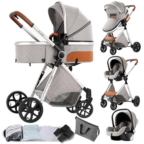 3-i-1 duovagn (liggdel och sittdel) med travel system, babyskydd, bärbar resevagn, vikbar, high landscape-barnvagn (588 grå)