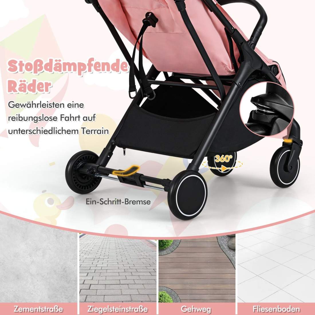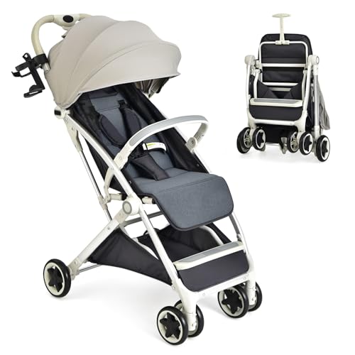 GOPLUS hopfällbar barnvagn, barnvagn med justerbart ryggstöd och skydd och förvaringskorg & mugghållare & 5-punkts säkerhetsbälte, resevagn för spädbarn 0–36 månader (grå)