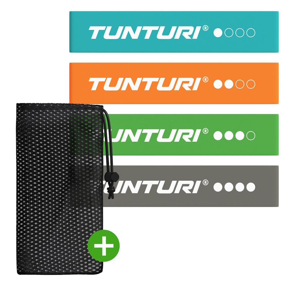 Schildkröt Mini Resistance Band, set om 5 motståndsband, 5 olika tjocklekar, träningsband, gymnastikbandsset, 5 färger, i bärväska, 960126