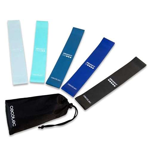Cecotec 5 set med elastiska band DrumFit_Resistance_Band_Set, 5 motståndsnivåer från 5 till 18 kg, slitstark latex, bärväska, alla typer av träning