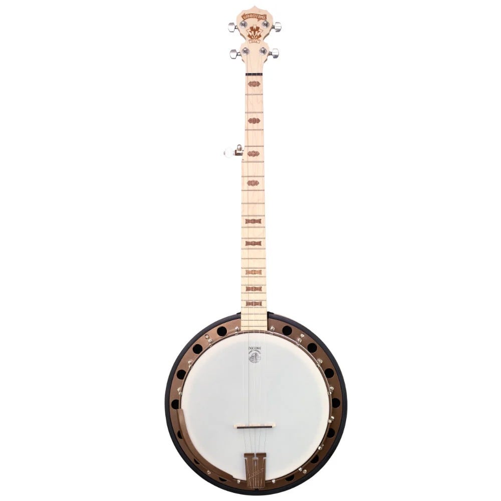 Crossrock ABS banjoväska med ryggsäcksremmar | Champagne matt finish för 5-strängad resonator och tenor – plyschinteriör, lås, gjutet hårt skal