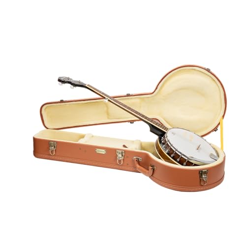 Crossrock Relief Series Banjo Case for 5-String Resonator | Carved Red Wood Finish, Ivory Plush Interior, Lock – Premium Wooden Hardshell