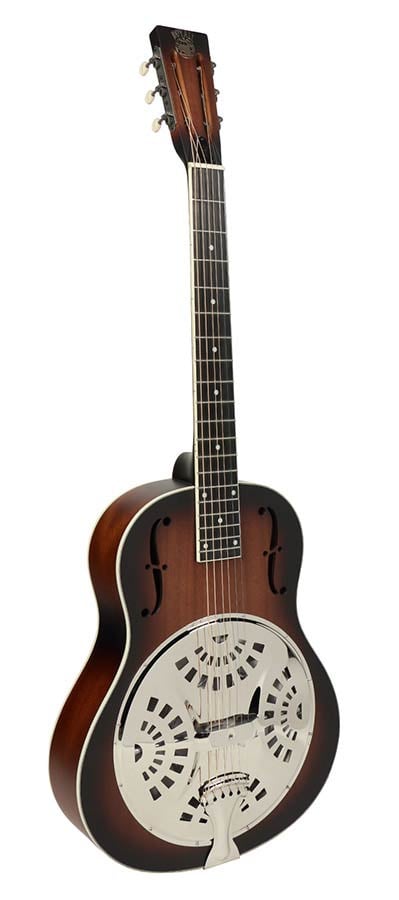 Resophonic Resonator Acoustic Electric Guitar - 6-string, rund hals, sunburst, mahogany, traditionell resonator med inbyggd förförstärkare, fodralväska, rem, stålsträngar, tuner, val