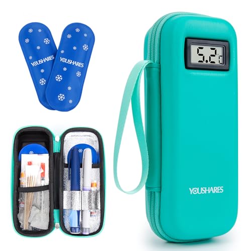 YOUSHARES Kylväska med 2 TSA-kylpaket, minipaket, kylbox för medicinering för resor, isolerad väska, litet fodral för epipen, insulinpenna, andra medicineringstillbehör, diabetespåse (grå)
