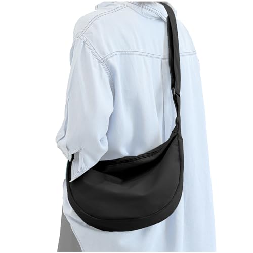 Medelstor crossbody-väska, halvmåneformad väska, för kvinnor och män, trendig axelväska med justerbar rem, för avslappnade resor, Svart, Crossbody väska