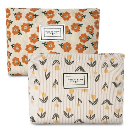 Aucuu Necessär kosmetikväska, kosmetisk väska, sminkväska multifunktionell, stor kapacitet sminkväska tvättväska, resor toalettväska, sminkväska väskor arrangör, Orange + aprikos-2 st