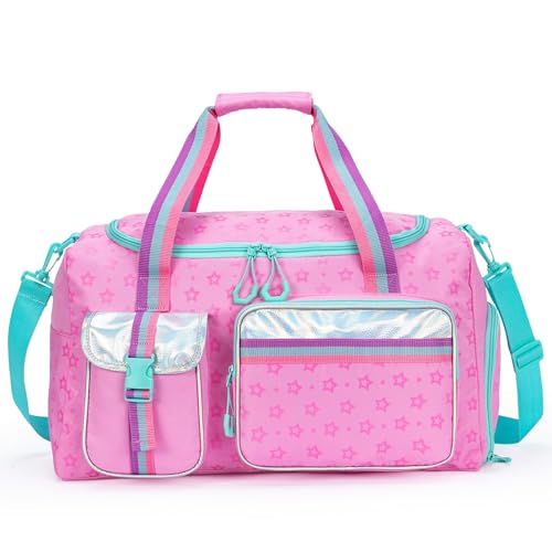HTgroce Sportväska Flicka Pool Väska Resor Weekend Strand Fotboll Gym med Skofack, Rosa stjärna, Resväskor