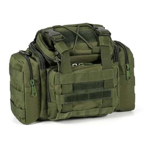 Dr.Fish stor kapacitet fiskeutrustning förvaringsväska flera fickor kappsäck axel midja handväska vattentålig för utomhus vandring jakt camping resor, Armégrön (mindre väska), 33*11*25, Tackelväska