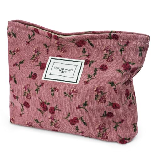 Narwey sminkväska för kvinnor kosmetisk väska resor kosmetisk arrangör för kvinnor flickor, Y-liten gråblå blomma, L