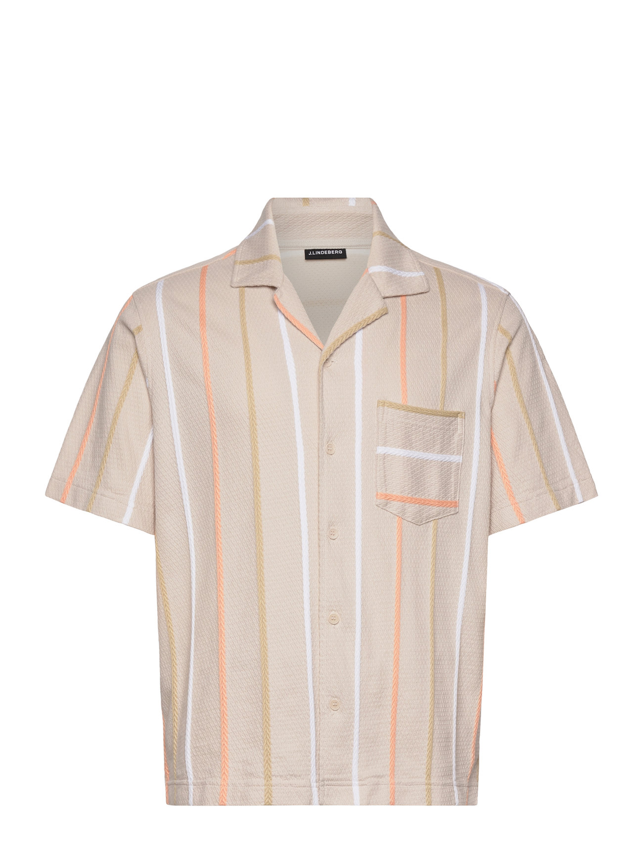 J. Lindeberg Theron Stripe Resort Shirt Beige