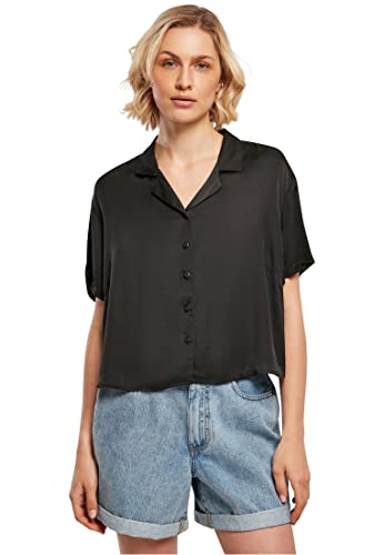 Urban Classics Damskjorta dam viskos satin resortskjorta, kortärmad damskjorta i 3 färger, storlekar XS – 5XL, svart, 5XL