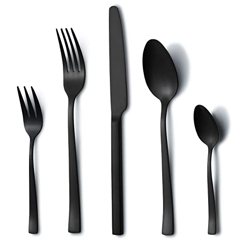 Xespis Bestick set 12 personer, 60 stycken svarta bestick, högglanspolerade och diskmaskinssäkra, eleganta bestick, svart matt, med kniv, gaffel, sked, för hem, fest, restaurang (svart)