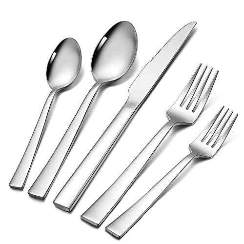 Herogo Bestick set, 36 delar rostfritt stål bestick med biffkniv, silver bestickset för 6 personer, elegant kniv gaffel sked set för hem restaurang, diskmaskin säker och rostfri