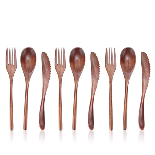 HERCHR 9 st träskedar gaffelkniv, Blandat bestickset kök bestick servissats honung tesked för hem kafé restaurang