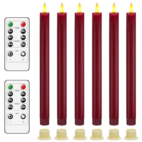 AnnSpa Lång LED flamlöst avsmalnande ljus 6 set batteridrivna flimrande avsmalnande ljus elektrisk 3D-veke, lång ljusstake för hem, restaurang, bröllop, displaystativ prydnadsdekor, röd
