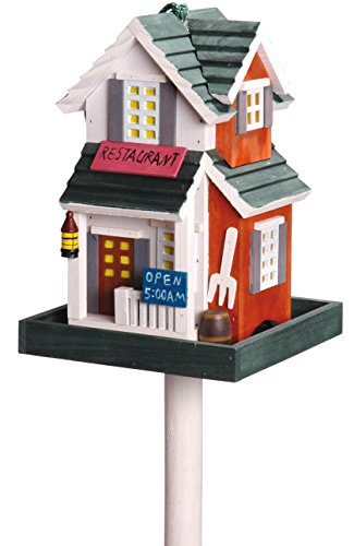 dobar® 25307FSC Färgglada fågelmathus restaurang – fågelhus inklusive stativ Western Style – Liten fågelvilla av trä – fågelmatningsstation med matsilo – 18 x 123 cm – röd