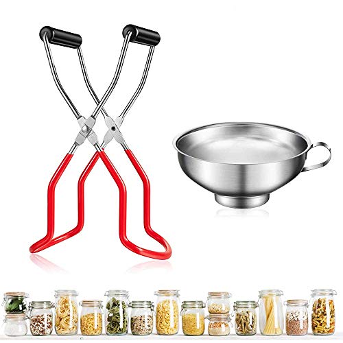 Burklyft i rostfritt stål, brett munspänne i rostfritt stål, uppbyggnadsburk, lyfttång, glasburk, halkfri burklyftare, med tratt, för kök restaurang konserveringburkar glas (röd)