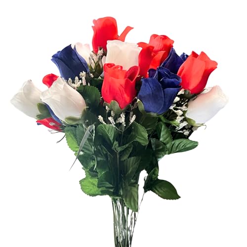Beundrad av naturen 14 stjälkar av konstgjorda blommor rosbuske för hemmakontor, bröllop och restaurang, dekorationsarrangemang, röd/vit/blå