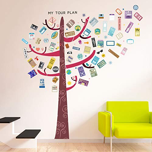 Walplus "Färgglad trädkrok bagageetiketter" hem restaurang dekoration gör-det-själv vardagsrum sovrum avtagbara självhäftande väggklistermärken konstdekaler kontorsdekor, röd, 160 x 180 cm