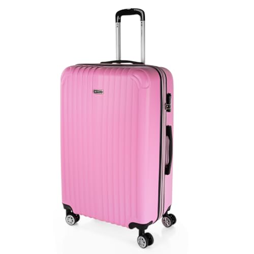 ITACA - Vagn resväska, 70 cm, stor storlek XL, ABS. Styv, resistent, robust och lätt. Stor kapacitet. Teleskophandtag, 2 infällbara handtag, 4 hjul, Rosa
