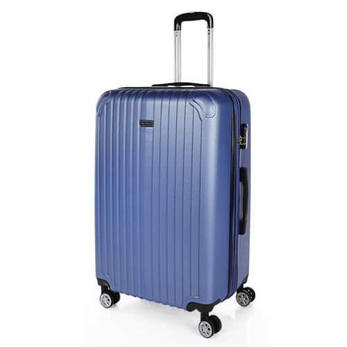 ITACA - Vagn resväska, 70 cm, stor storlek XL, ABS. Styv, resistent, robust och lätt. Stor kapacitet. Teleskophandtag, 2 infällbara handtag, 4 hjul, Blå Safir