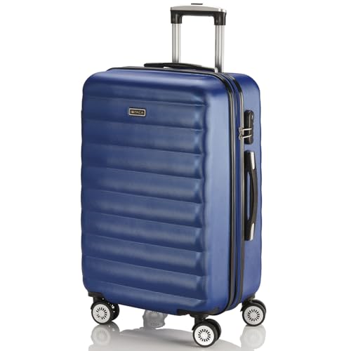 Kono Medium 24 tums Resväska Lättviktsresväska med ABS Hårdskal och TSA lås och 4 hjul Mode Trolley Resväska 2 års Garanti Hållbar (24", Marinblått)