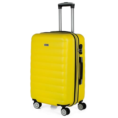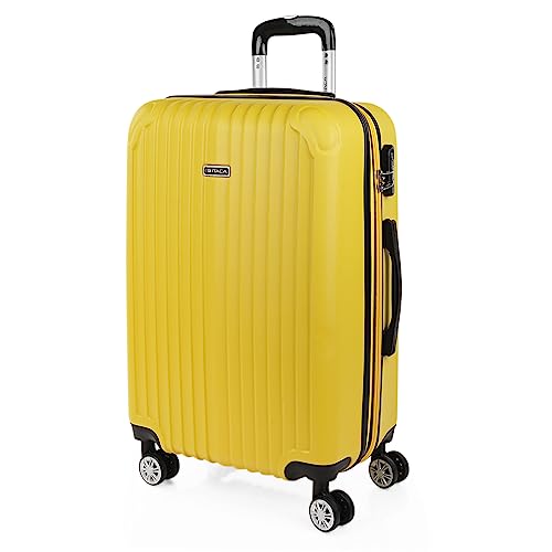 ITACA - Vagn resväska, 60 cm, medelstor, ABS. Styv, resistent, robust och lätt. Teleskophandtag, 2 uppfällbara handtag, 4 hjul, Gul