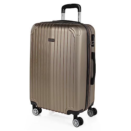 ITACA - Vagn resväska, 60 cm, medelstor, ABS. Styv, resistent, robust och lätt. Teleskophandtag, 2 uppfällbara handtag, 4 hjul, Champagne