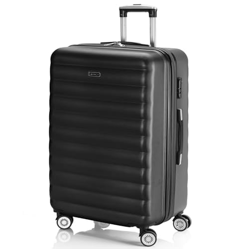 ITACA - Vagn resväska, 70 cm, stor storlek XL, ABS. Styv, resistent, robust och lätt. Stor kapacitet. Teleskophandtag, 2 infällbara handtag, 4 hjul, Antracit