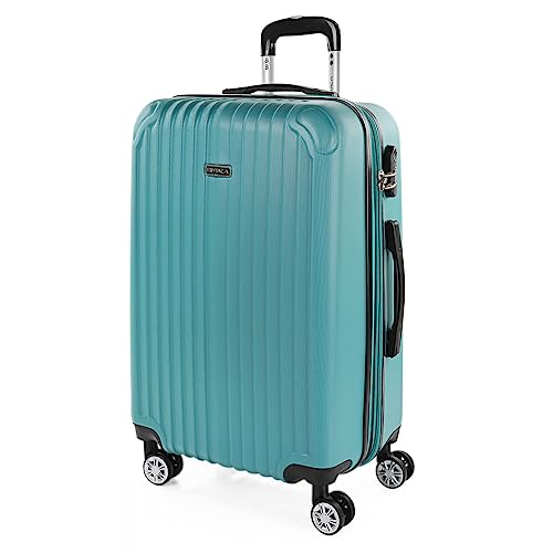 ITACA - Vagn resväska, 60 cm, medelstor, ABS. Styv, resistent, robust och lätt. Teleskophandtag, 2 uppfällbara handtag, 4 hjul, Acquamarine