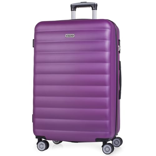 ITACA - Uttensibel vagn resväska, 70 cm, stor storlek, ABS. Styv, motståndskraftig, robust och lätt. Stor kapacitet. Teleskophandtag. 2 infällbara handtag, 4 hjul, Lila