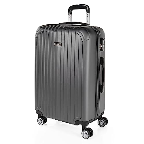ITACA - Vagn resväska, 60 cm, medelstor, ABS. Styv, resistent, robust och lätt. Teleskophandtag, 2 uppfällbara handtag, 4 hjul, Antracit