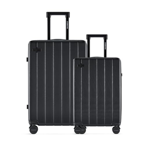 ETERNITIVE – hårt skal set 2 delar | resväska av ABS-bagage med TSA-lås | storlek: S & M | Resväska med 4 tvillinghjul 360° | Trolley handbagage 37 l 60 l | svart, svart, Set - Cabin and Medium, Set
