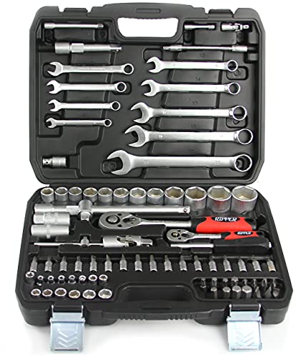 Set ratchet nyckel kompasser resväska verktyg 82st insatser för verkstad Kompassar insatser 1/4" 1/2"