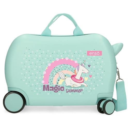 Enso Magic Summer barnväska av ABS, flerriktade dubbla hjul, många användningsområden, Turkos, 45x31x20 cms, barn resväska