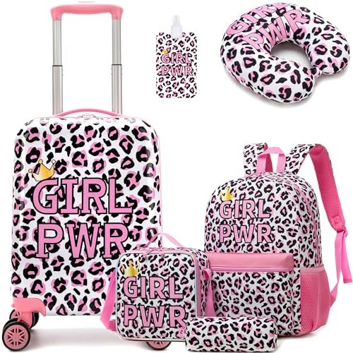 HTgroce 5 st barnväska, resväska för barn med ryggsäck, nackkudde, bagageetikett, resväska för barn med 4 hjul, Pwr
