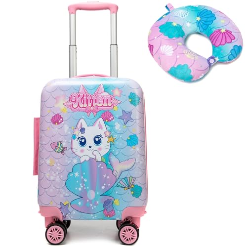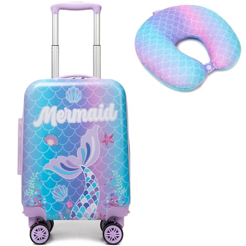 HTgroce 2 st barnresväska för barn, resväska med nackkudde, bagageetikett, resväska för flickor, med universella hjul, Sjöjungfrur