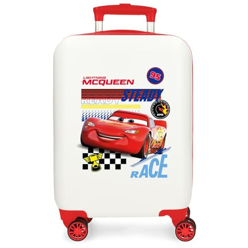 Joumma Disney Cars Lets Race-kabinväska för barn, hård ABS kombinationslås sida 4 dubbla hjul bagage hand, Vit, Resväska