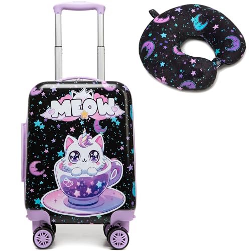 HTgroce 2 st resväska för barn, reseväska för barn med resekuddar, bagageetikett, tjejresväska med universella hjul, A-katter, 31 x 19.5 x 40.5 cm