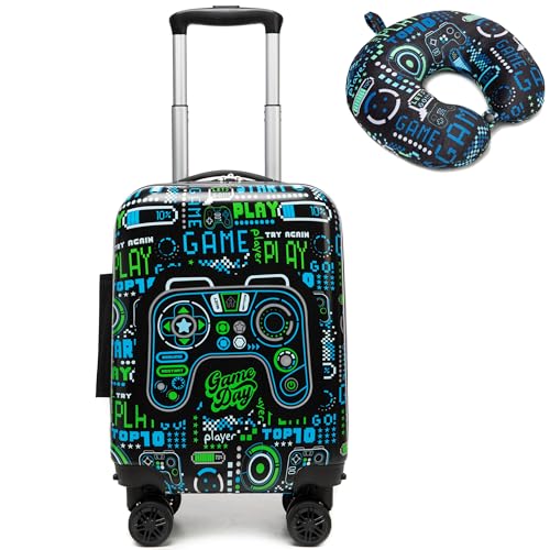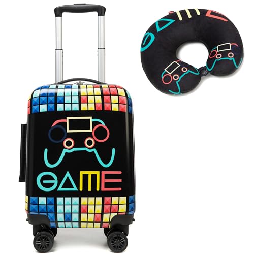HTgroce Resväska för barn med kudde resväska med 360 hjul, A-bärande