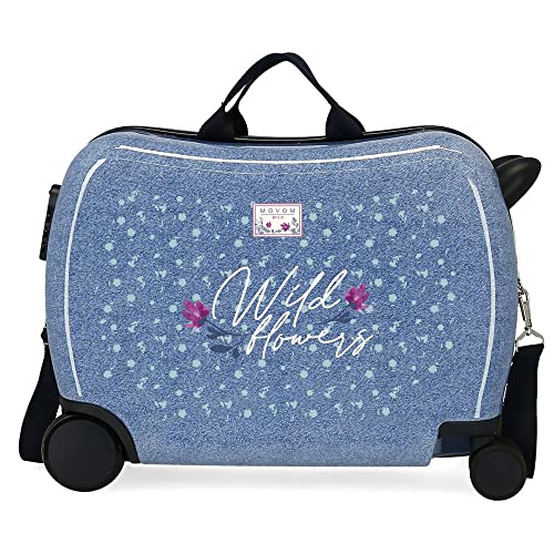Movom Wild Flowers Resväska Barn Blå 50x39x20 cms Stelt ABS Kombinationslås Sidosateral 34L 1,8 kg 4 Hjul Handbagage, Blå, Maleta Infantil, barnresväska