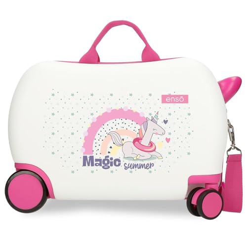 Enso Magic Summer Resväska för barn, tillverkad av ABS, dubbla flerriktade hjul, flera sätt att använda, Vit, Taglia Unica, barnresväska