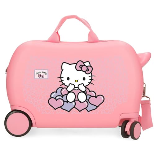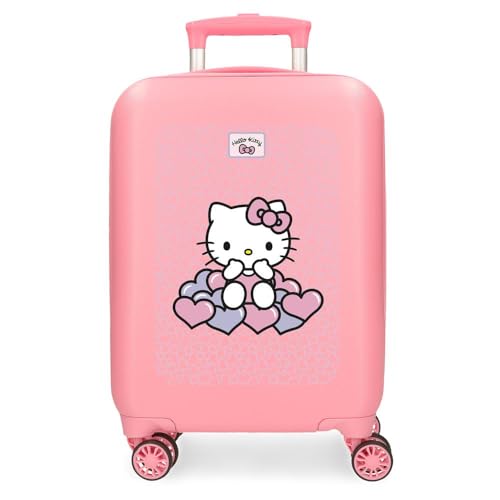 Hello Kitty Hjärtan & Dots, resväska för barn, rosa, tillverkad av ABS, fyra flerriktade vridbara dubbla hjul, sidokombinationslås, insida med två fack., Rosa, Resväska