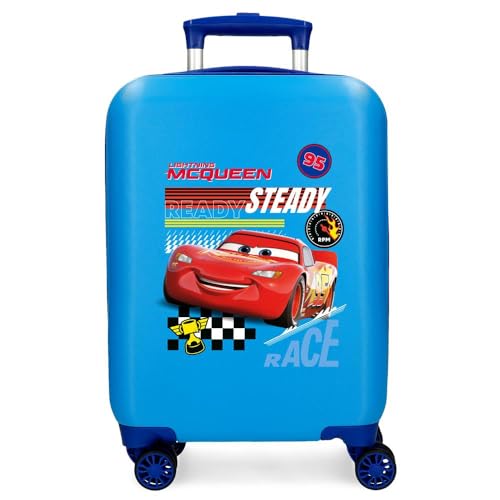 Joumma Disney Cars Lets Race-kabinväska för barn, hård ABS kombinationslås sida 4 dubbla hjul bagage hand, Blå, Resväska